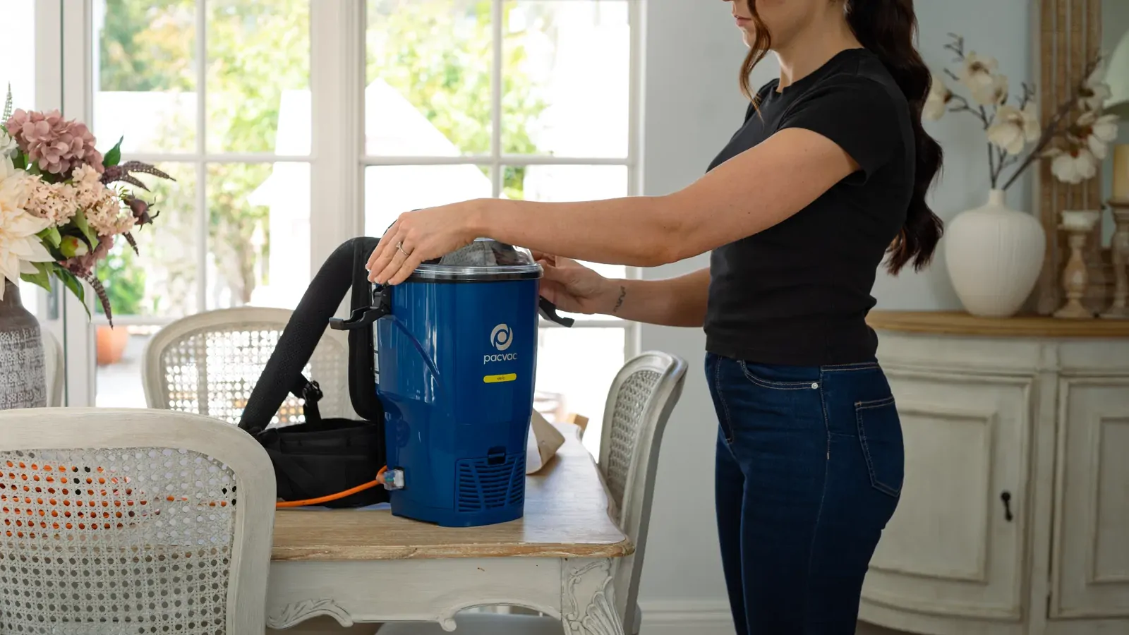 The corded Velo is amongst the lightest backpack vacuums on the market, packing a punch with a 900W motor powering the compact 3.9kg machine.